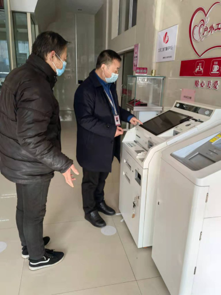 走进宝应农商银行南园支行大厅,映入眼帘的,是一位站在STM旁,手拿指挥棒,与客户相谈甚欢的大堂经理——王宝禄,他就是客户口中需要点名提供专属服务的“老王”。