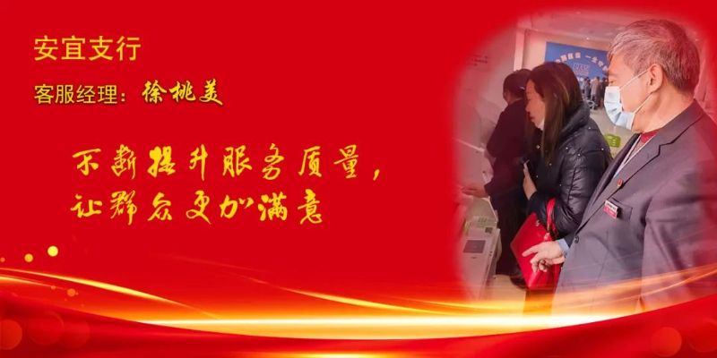安宜支行位于老城区核心路段,平时来往客群较多,网点业务量一直居高不下。在第一波大规模感染冲击到达时,为确保网点的正常运营,身为老党员的客服经理徐桃美充分发挥模范带头作用,始终坚守在工作岗位,用实际行动诠释了心系群众、服务群众的责任与担当。