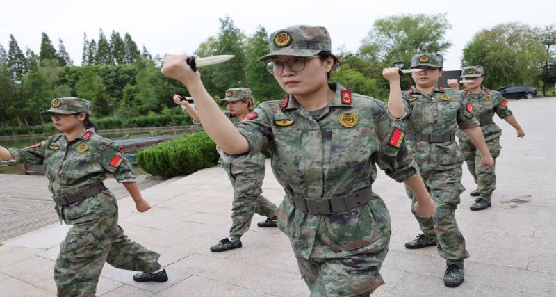 曙光初照演兵场。在整齐划一的训练场上,宝应农商银行民兵战士们身着迷彩服,口号嘹亮,动作标准,士气高昂地进行着队列训练和捕俘刀格斗训练。她们头顶伏天的烈日摸爬滚打,脚踏灼热的大地步履坚石,一丝不苟地刻苦训练。以强烈的责任感和使命感,充分发挥不怕苦、不怕累的精神,展现出宝应农商银行青年员工积极向上的精神面貌和锐意进取的拼搏精神。